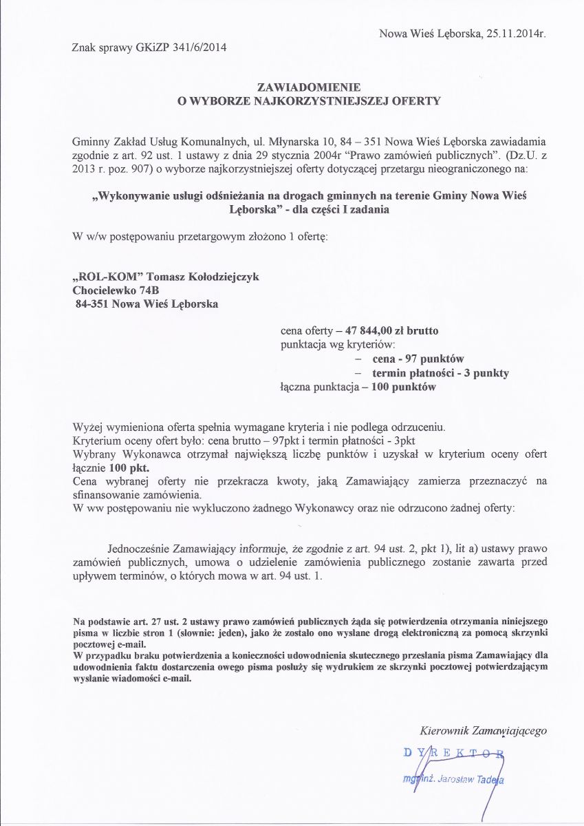 Utworzenie dokumentu zawiadomienie o wyborze najkorzystniejszej oferty